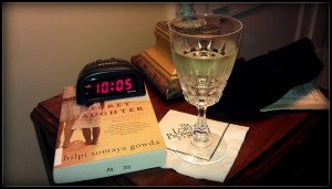Day 263: After a long day of work, another underwriter in town & I picked up Famous Subs for dinner. By 10p, my wine glass was being emptied & the sleep mask was calling my name.