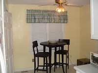 The new curtains fabric came form Calico Corners. We got it for a steal (originally $20/yard and bought it at $4/yard!) and bought too much because I couldnt remember how many & how big the kitchen windows were. Since we had a lot of fabric left over, my Nana’s working on bar stool seat cushions and a table cloth for our dining room table.