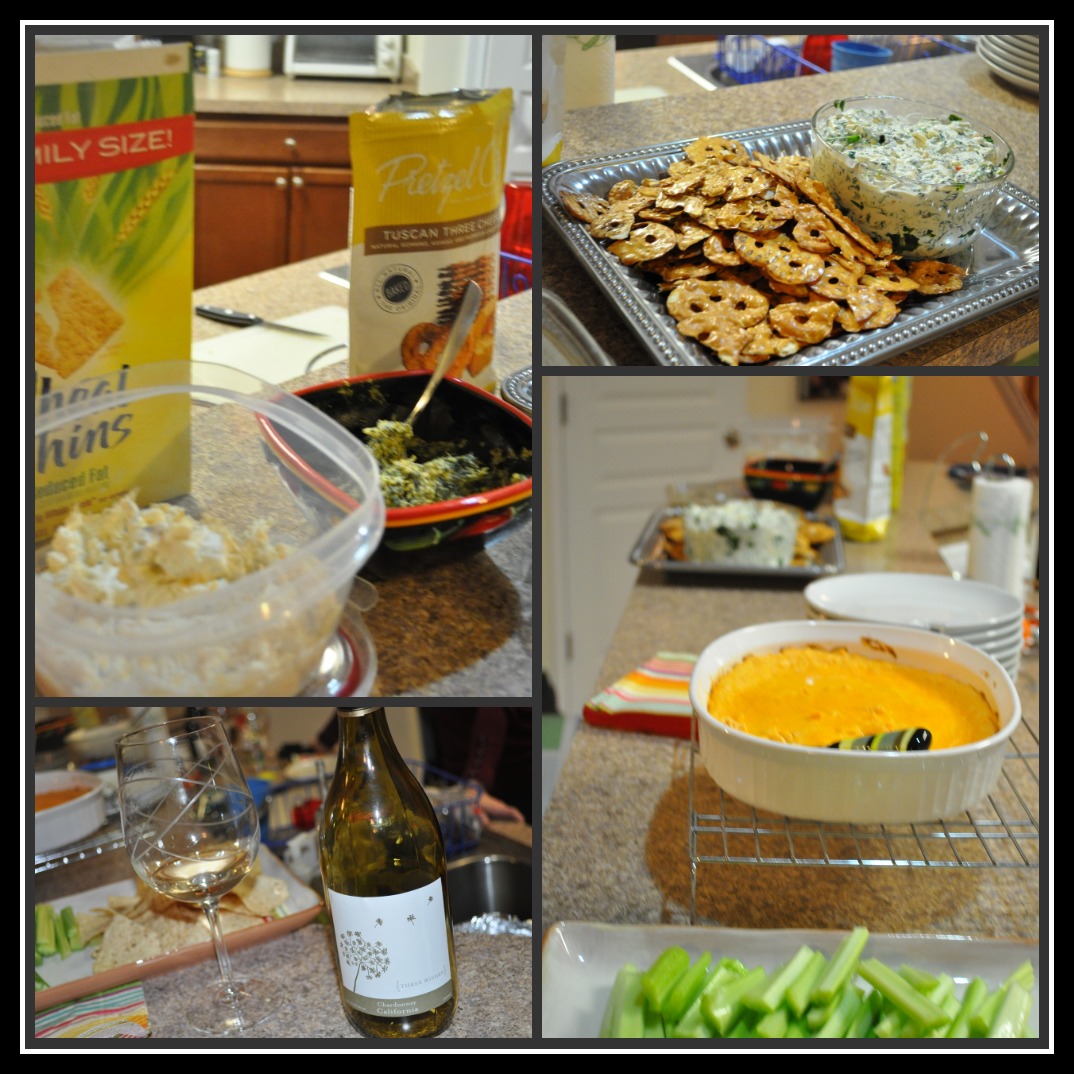 Mom had planned some great appetizers too. We made her famous meatballs {Jason had almost half of them!}. I also put together a recipe she’d told me about last time I was there since she know I love hummus. Crazy enough I saw it posted on one of the cooking blogs I follow this week. {I don’t remember which one but she called it her friend’s famous recipe!} I think her copy of the ripped-off-the-back-of-hummus-container recipe called it 5-Layer Greek Dip.