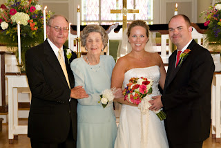 I’m going to see my dad’s parents this weekend. They’re so fun and spunky! Nana called me at work today to say that there’s a beach music concert Friday night and she was hoping we’d be down in time to go with her! I just can’t wait to give them a big hug! Here’s a picture of us at the wedding reception.Jason & I are going to a wedding in CLT in a few weekends and we’ll be able to see my mom’s parents then. They just moved into a retirement place~ I’ve been there once before and its a gorgeous condo but its been a huge adjustment for my very independent Papa. I can’t wait to have lunch with them soon!