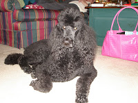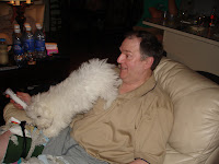 I wanted to share some of my favorite pictures of him with the blogging world. I don’t have as many as I thought on this computer, but here’s a few and the stories surrounding them. The top picture is from Christmas a few years ago~ I think ’07 is when I got that pink bag. Bogey’s favorite part of Christmas was helping Steven open the presents unless he had a Christmas ball under the tree~ he’d sniff those out for sure!