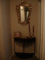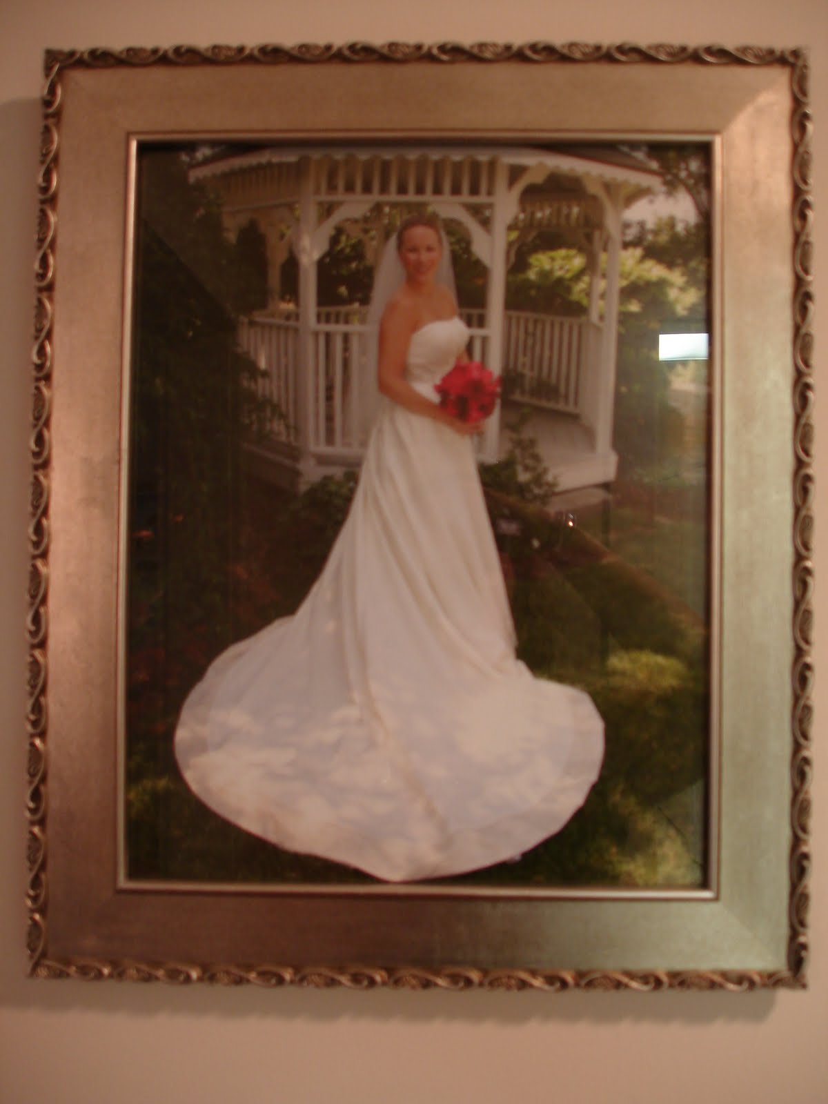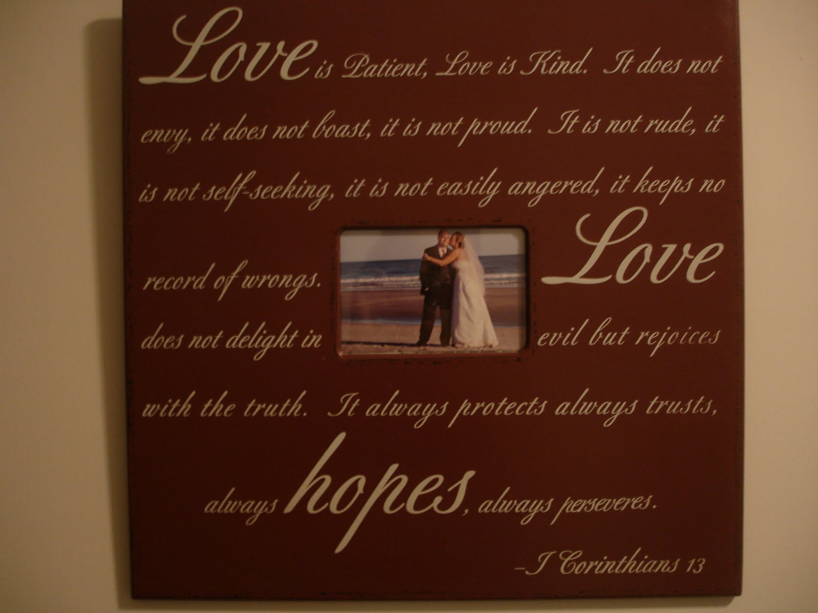 Let’s start with our foyer. I couldn’t get a good picture of the overall, so here’s my three favorites from the area: dried flowers from my bouquet, wedding portrait, & wedding Bible quote & favorite beach wedding photo.