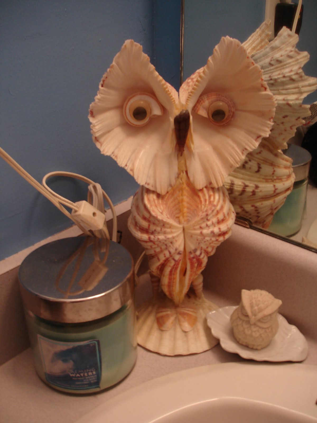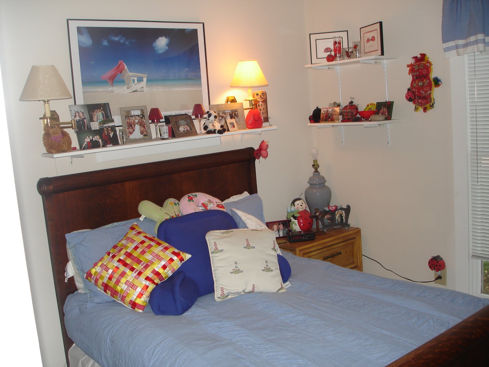 This room is a disaster. It was an office/junk room. Husband’s trying to turn it into a “man room”. It’ll eventually be the nursery (who knows where all the stuff will go then). Yall only get a brief glance.Next as we make our way down the hall is our guest bedroom. This is almost the exact same room as my college & right post college room. But I still love my Chi Omega owls & photos.